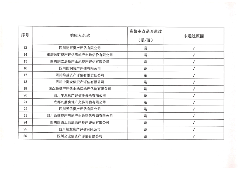 雅安交通建設(shè)(集團(tuán))有限責(zé)任公司資產(chǎn)評估服務(wù)企業(yè)入庫比選結(jié)果