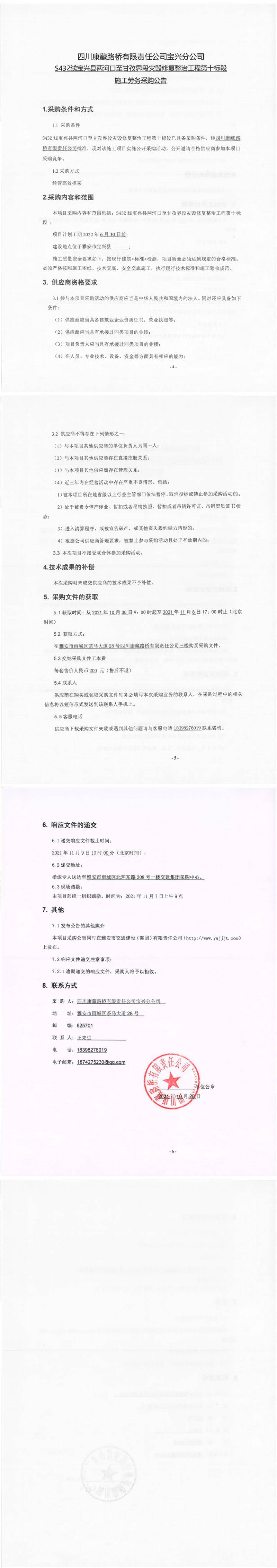 四川康藏路橋有限責(zé)任公司寶興分公司S432線寶興縣兩河口至甘孜界段災(zāi)毀修復(fù)整治工程第十標(biāo)段施工勞務(wù)采購公告