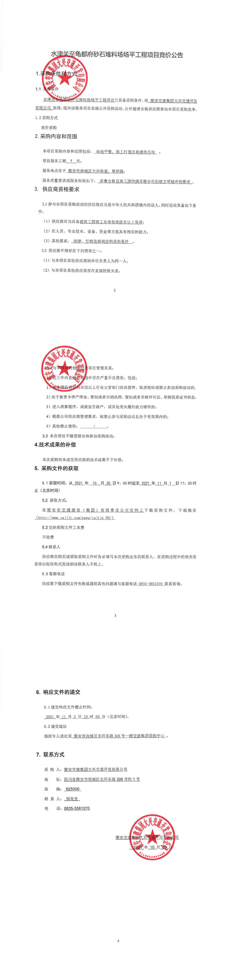 雅安交建集團(tuán)大興交通開發(fā)有限公司水津關(guān)至龜都府砂石堆料場(chǎng)場(chǎng)平工程項(xiàng)目競(jìng)價(jià)公告