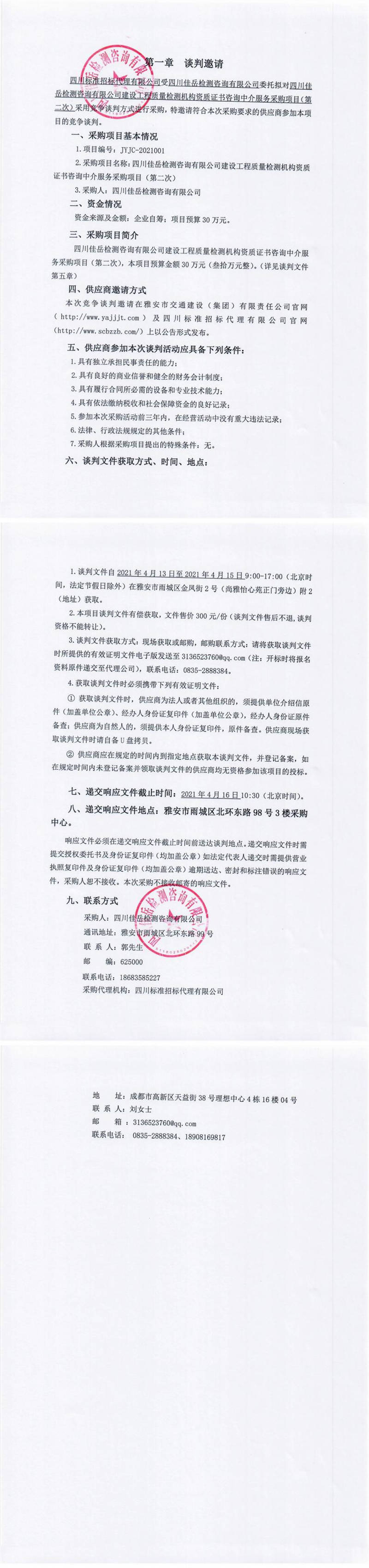 四川佳岳檢測咨詢有限公司建設(shè)工程質(zhì)量檢測機(jī)構(gòu)資質(zhì)證書咨詢中介服務(wù)采購項目(第二次)競爭談判公告