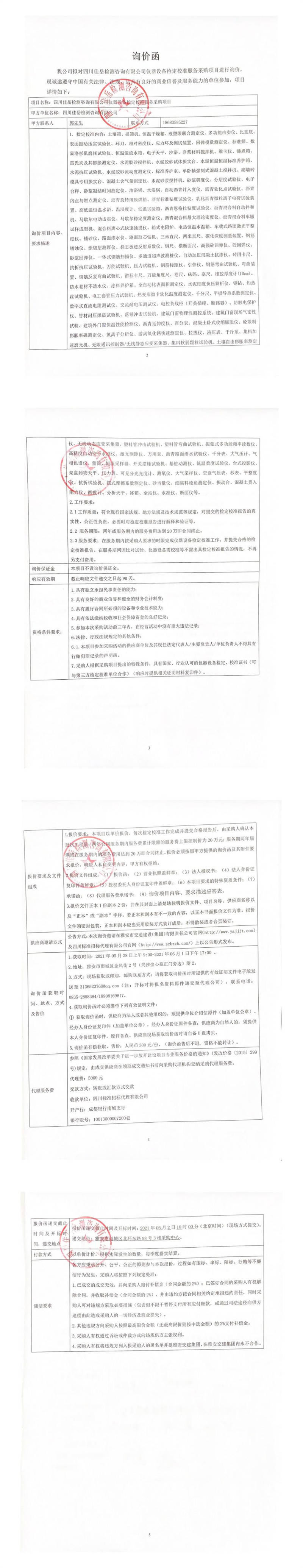 四川佳岳檢測咨詢有限公司儀器設備檢定校準服務采購詢價公告
