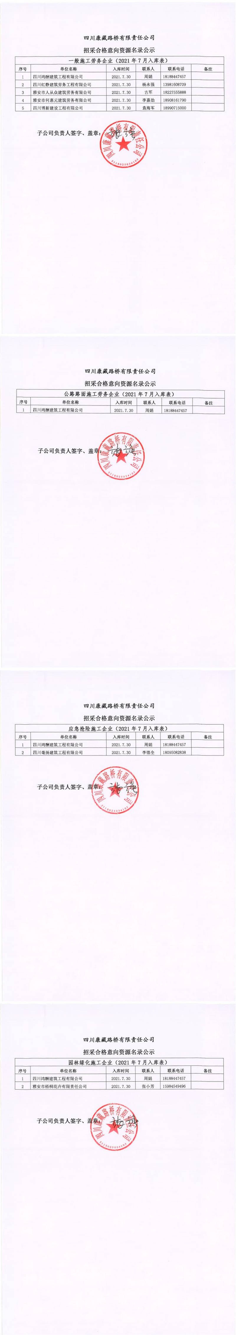 四川康藏路橋有限責任公司招采合格意向資源名錄公示