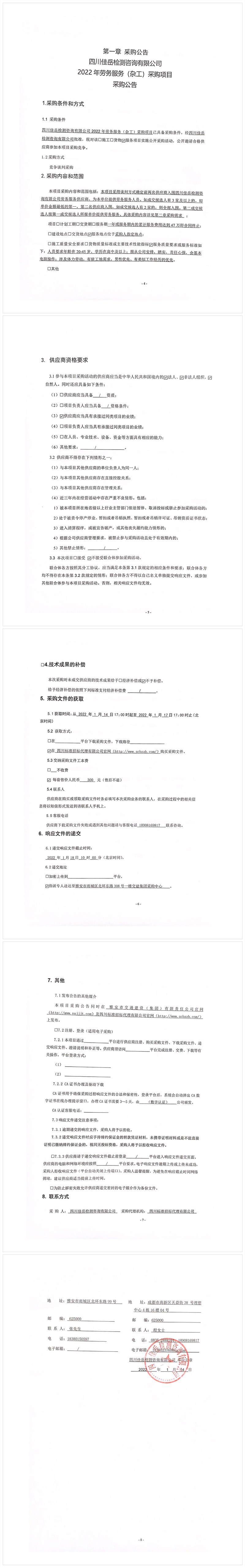 四川佳岳檢測咨詢有限公司2022年勞務服務(雜工)采購項目采購公告