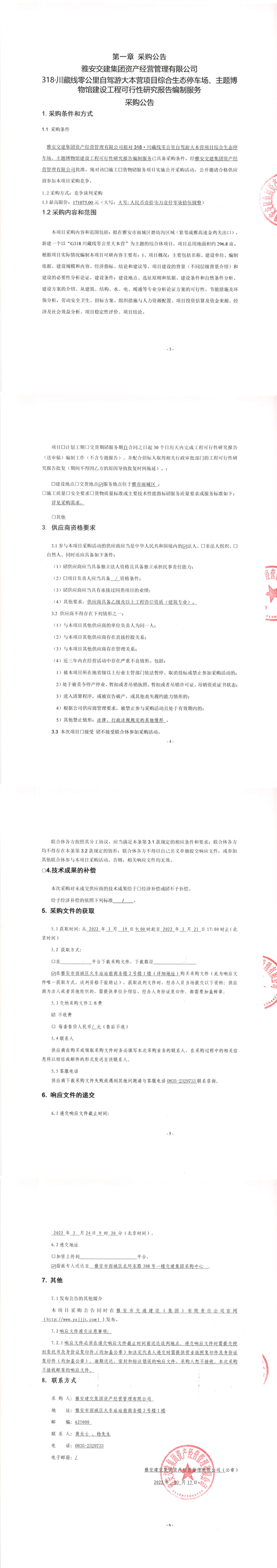 雅安交建集團(tuán)資產(chǎn)經(jīng)營(yíng)管理有限公司318.川藏線(xiàn)零公里自駕游大本營(yíng)項(xiàng)目綜合生態(tài)停車(chē)場(chǎng)、主題博物館建設(shè)工程可行性研究報(bào)告編制服務(wù)采購(gòu)公告
