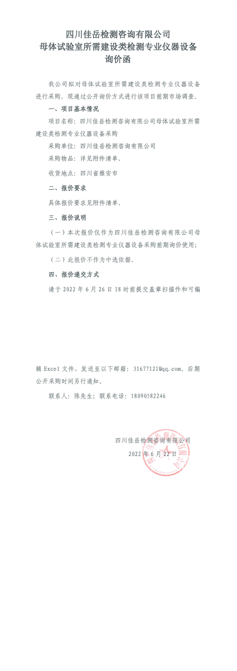四川佳岳檢測咨詢有限公司母體試驗室所需建設(shè)類檢測專業(yè)儀器設(shè)備詢價函