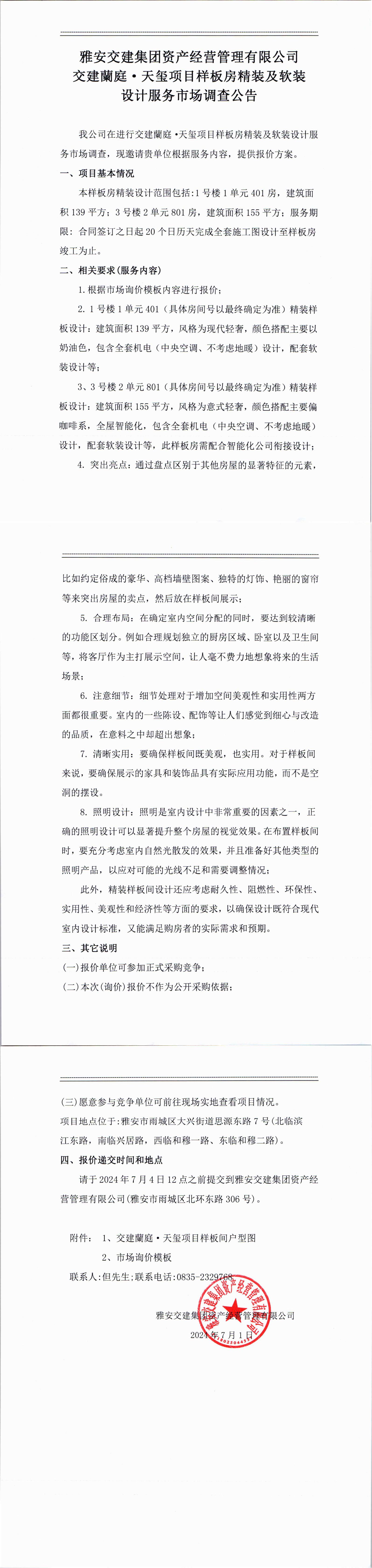 雅安交建集團(tuán)資產(chǎn)經(jīng)營管理有限公司交建蘭庭·天璽項(xiàng)目樣板房精裝及軟裝設(shè)計(jì)服務(wù)市場調(diào)查公告