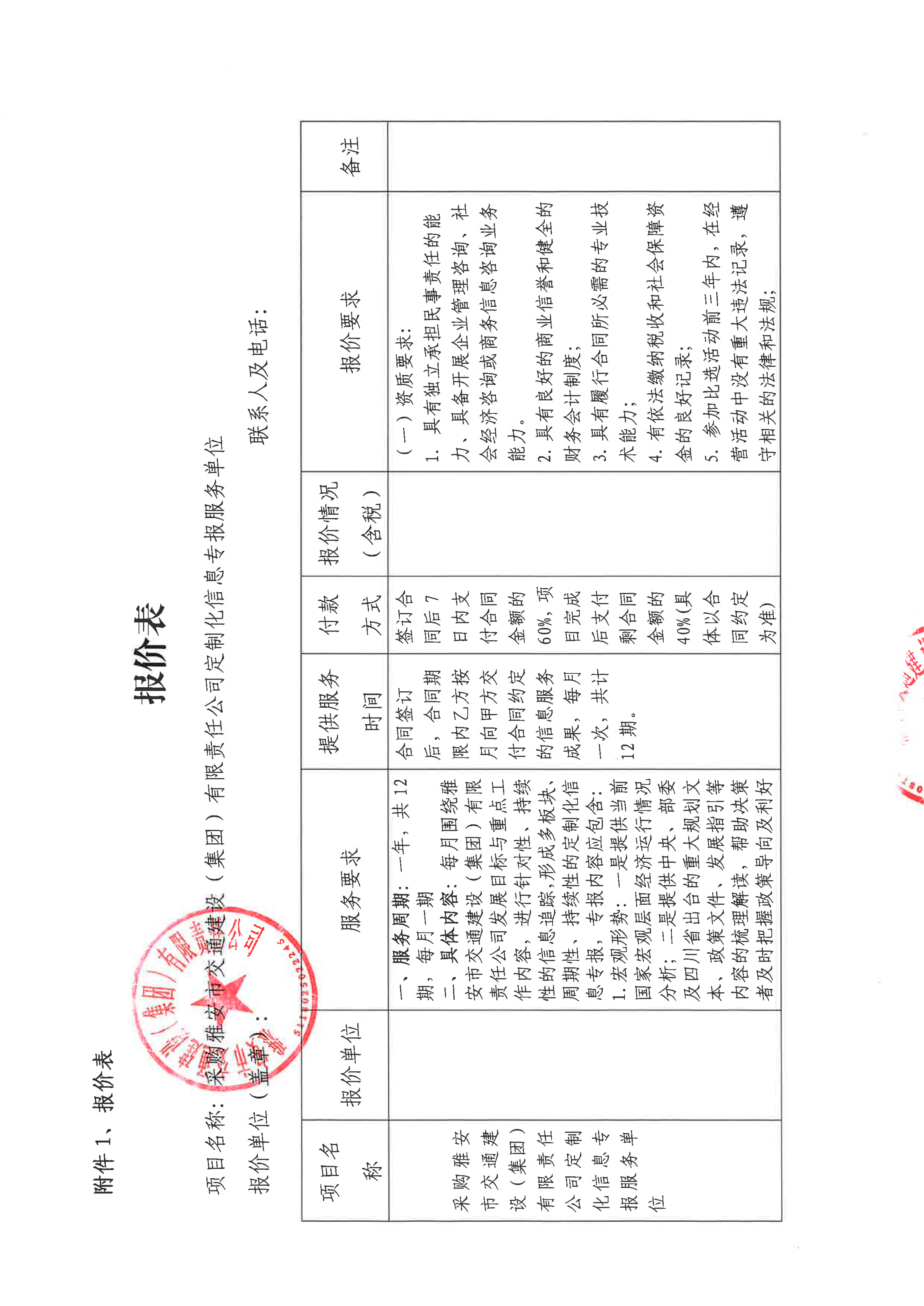 關(guān)于雅安市交通建設(shè)(集團(tuán))有限責(zé)任公司定制化信息專報(bào)服務(wù)采購限價(jià)的詢價(jià)函