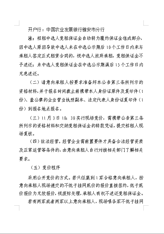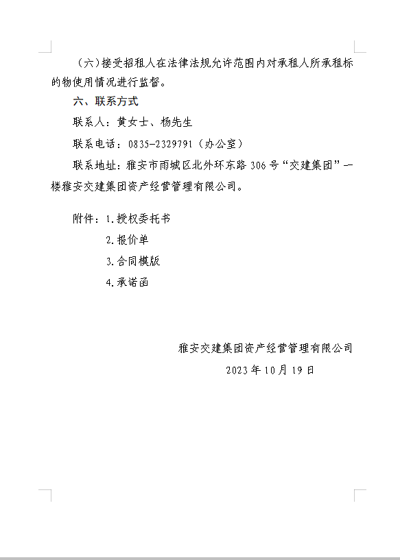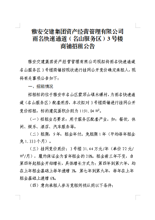 雅安交建集團資產經營管理有限公司 雨名快速通道(名山服務區(qū))3號樓商鋪招租公告