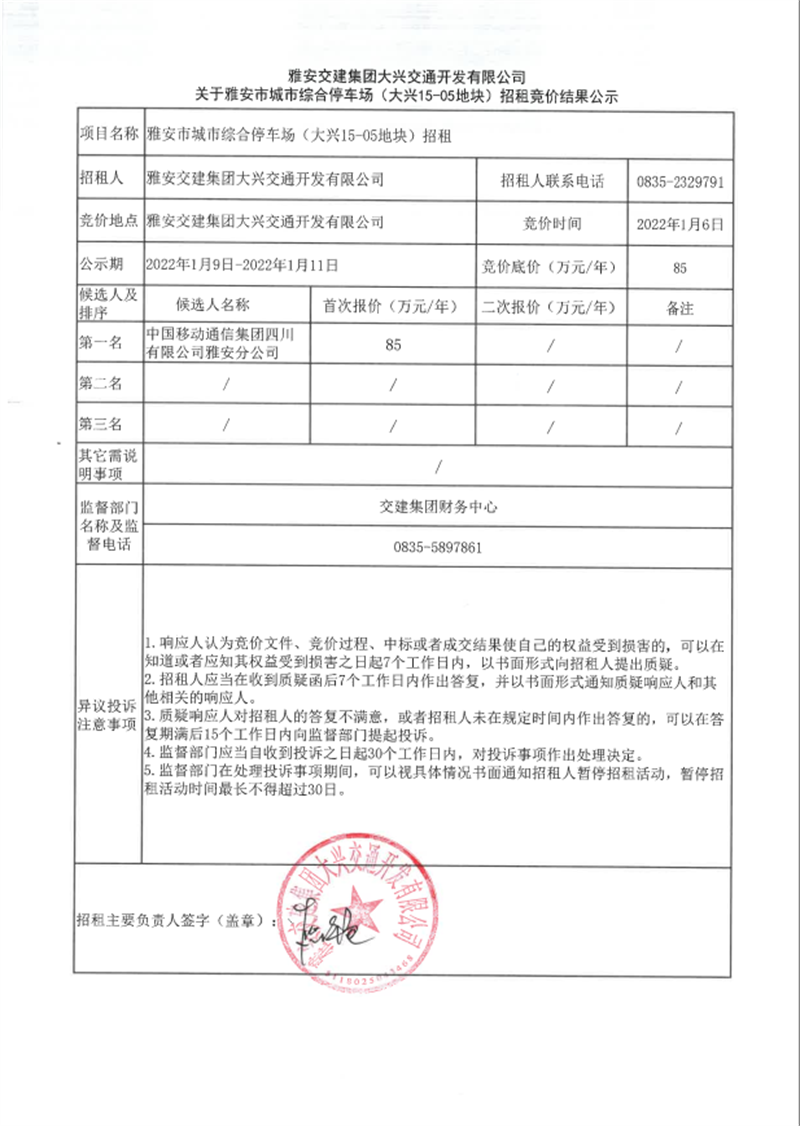 ´óÅdé_°l(f¨¡)¹«Ë¾êPÓÚÑŰ²ÊгÇÊоCºÏͣ܇ˆö£¨´óÅd15-05µØ‰K£©ÕÐ×⸂ƒr½Y(ji¨¦)¹ûµÄ¹«Ê¾
