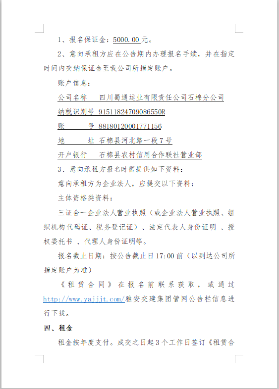 蜀通運(yùn)業(yè)有限責(zé)任公司關(guān)于閑置資產(chǎn)公開(kāi)招租的公告
