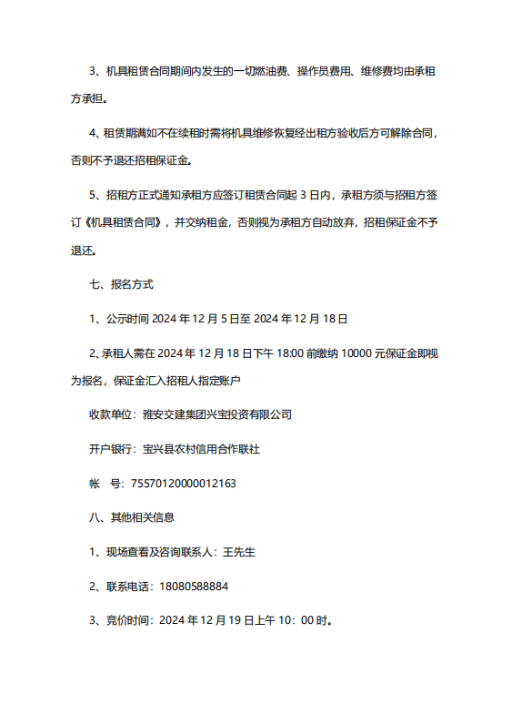 雅安交建集團興寶投資有限公司招租公告