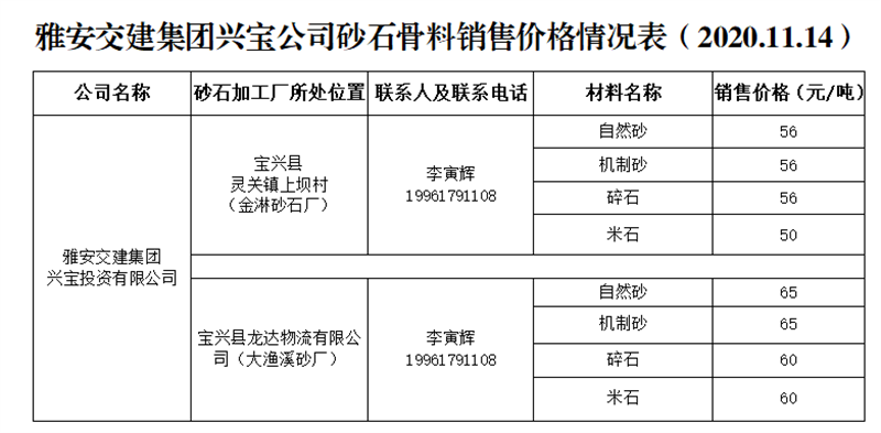 ÑŰ²½»½¨¼¯ˆF(tu¨¢n)ÅdŒš¹«Ë¾É°Ê¯¹ÇÁÏäN(xi¨¡o)ÊÛƒr(ji¨¤)¸ñÇé›r±í£¨2020.11.14£©