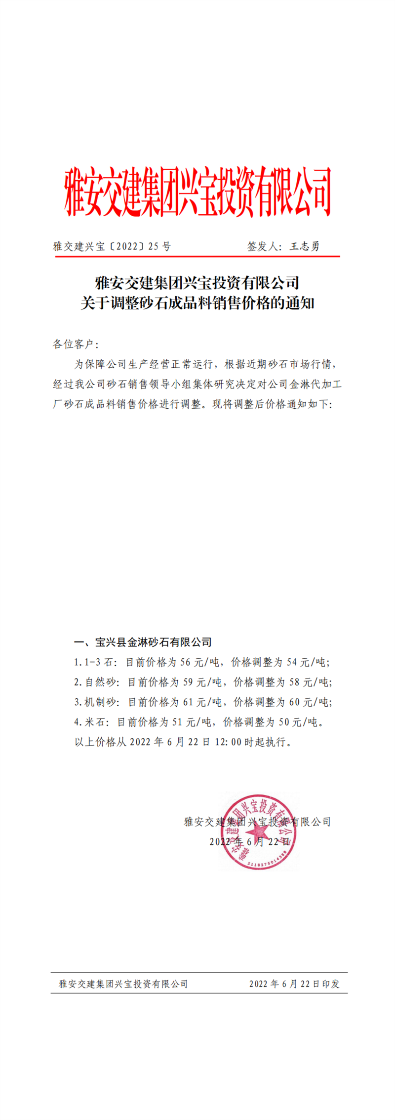 ÑŰ²½»½¨¼¯ˆFÅdŒšÍ¶ÙYÓÐÏÞ¹«Ë¾ êPÓÚÕ{Õûɰʯ³ÉÆ·ÁÏäNÊÛƒr¸ñµÄ֪ͨ£¨2022-6-22£©